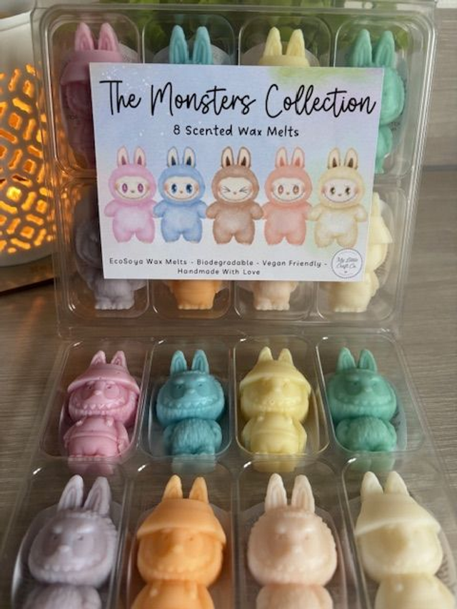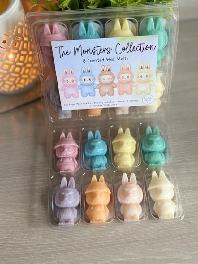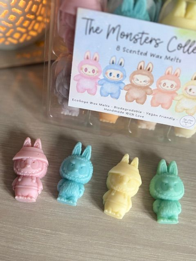 The Monsters Collection Set of 8 Wax Melts. Labubu Shapes. Highly Scented Soy Wax Melts, Vegan Friendly and Biodegradable.